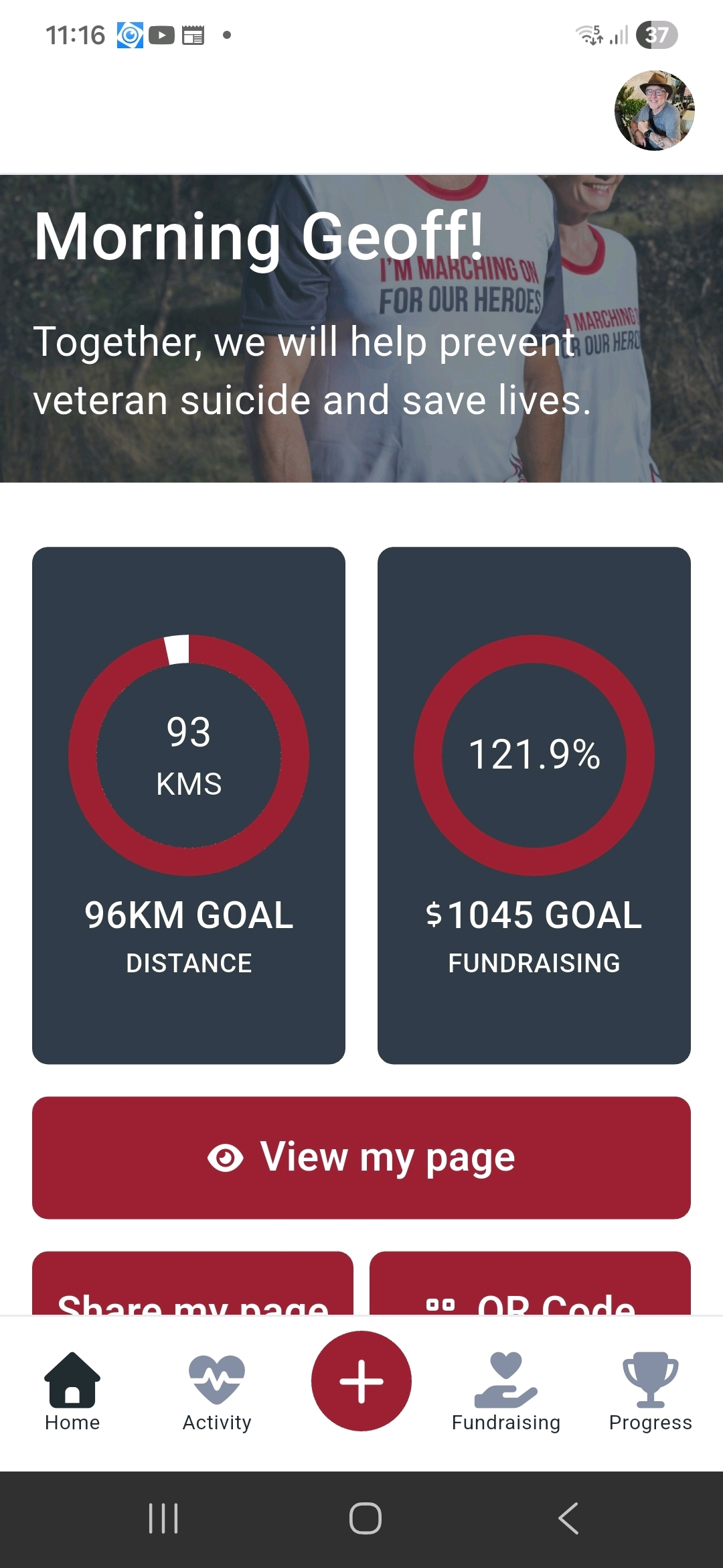 Well done Geoff, great effort in support of our veterans.