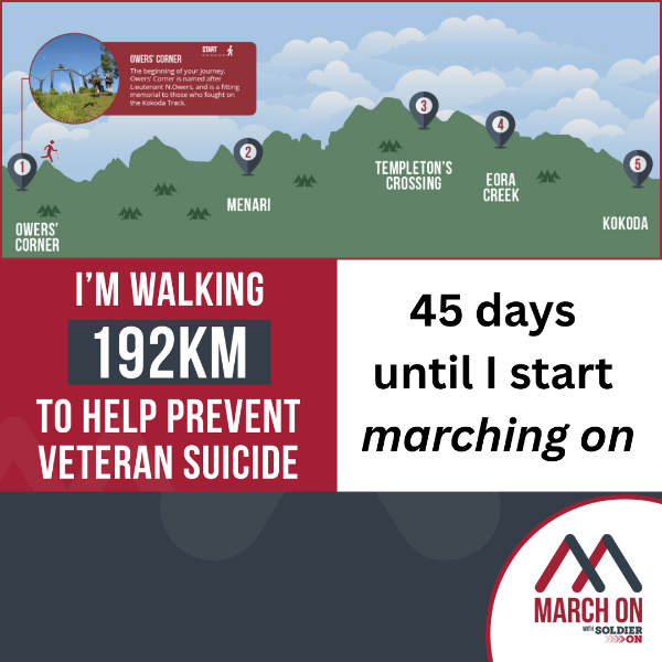 So, this March, I am walking to support Soldier On's mental health services and programs to help prevent veteran suicide and save lives.