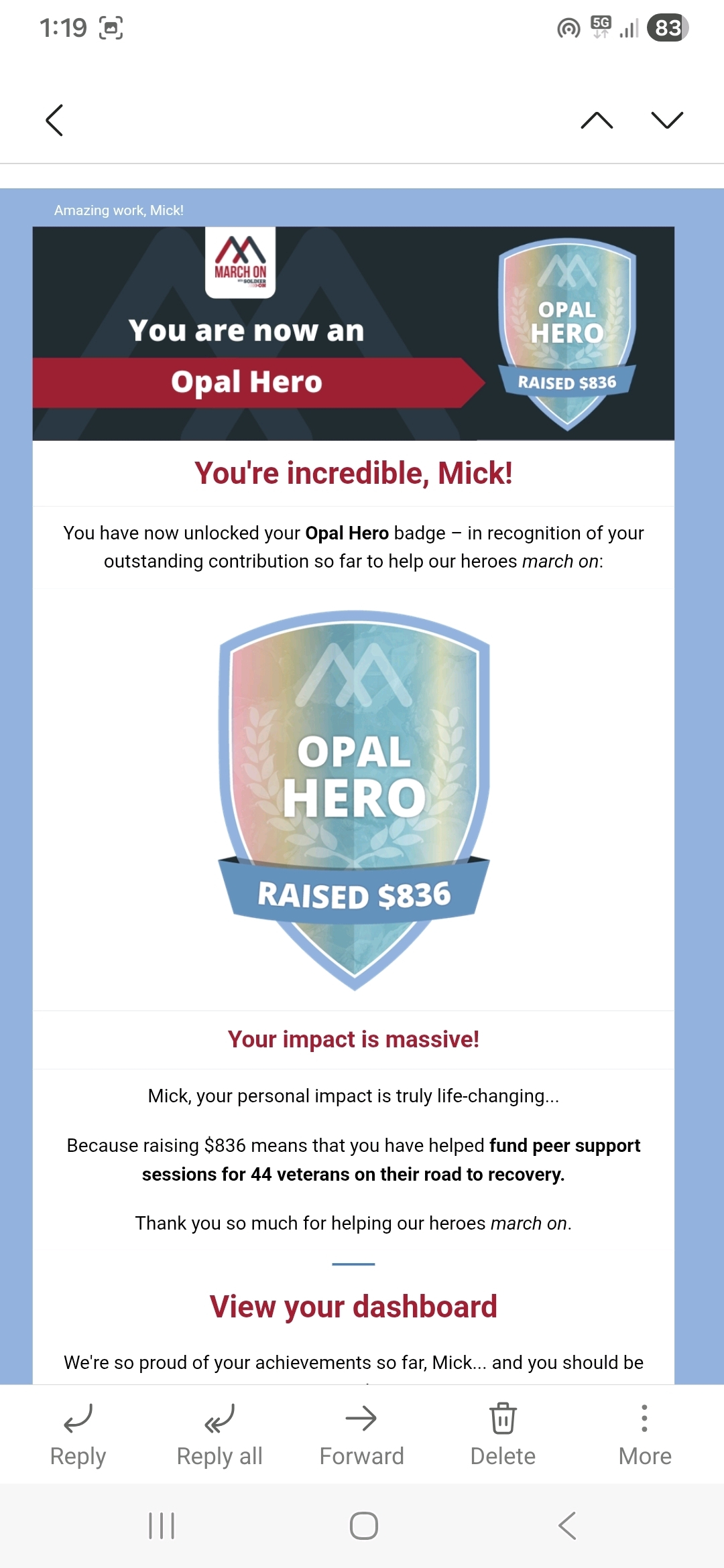 ...to support the mental health of our brave veterans to help them march on.