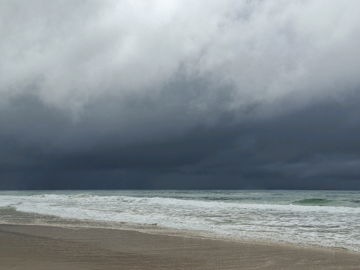 Beach walking in the rain!