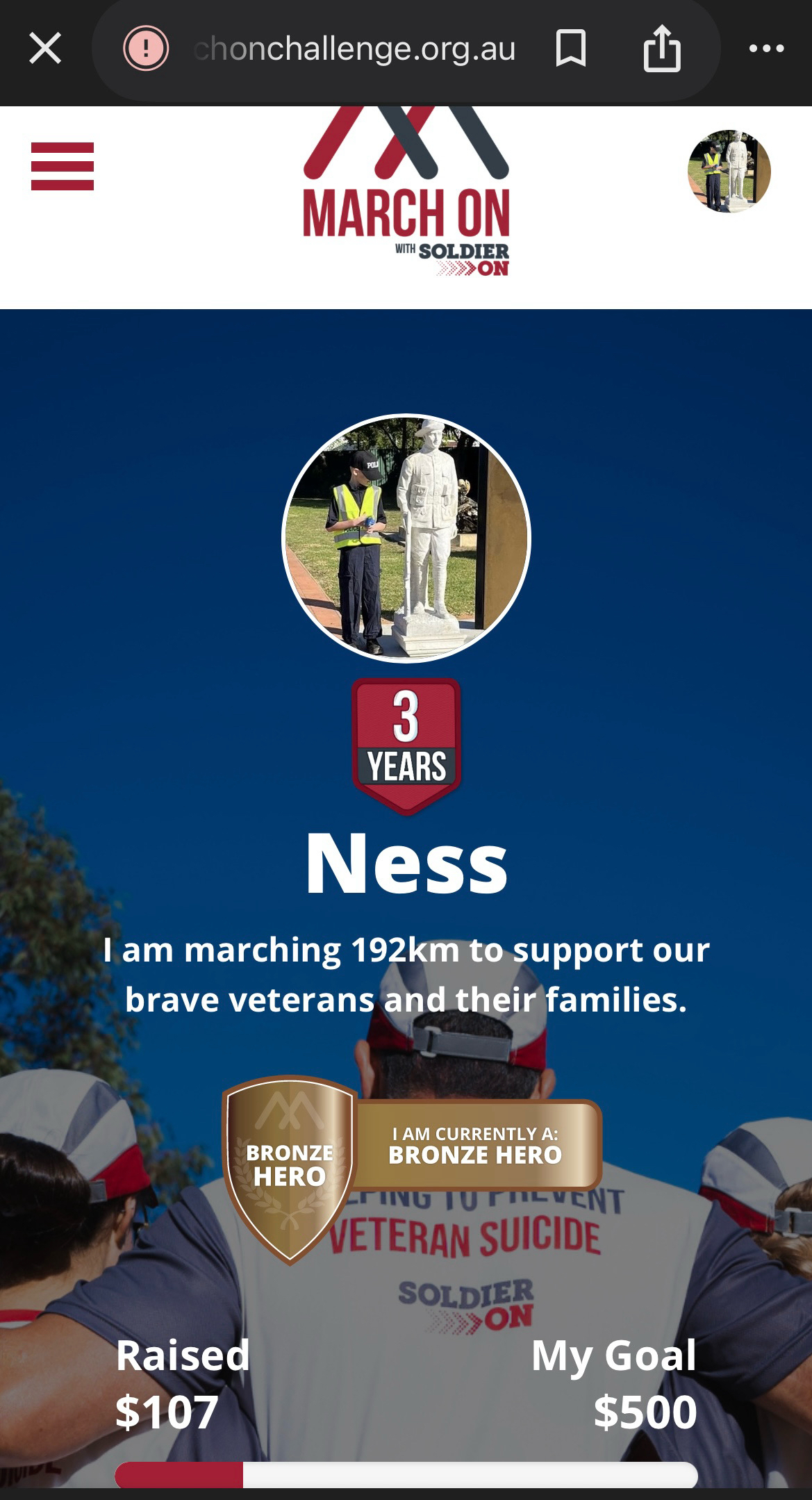 So, this March, I am walking to support Soldier On's mental health services and programs to help prevent veteran suicide and save lives.